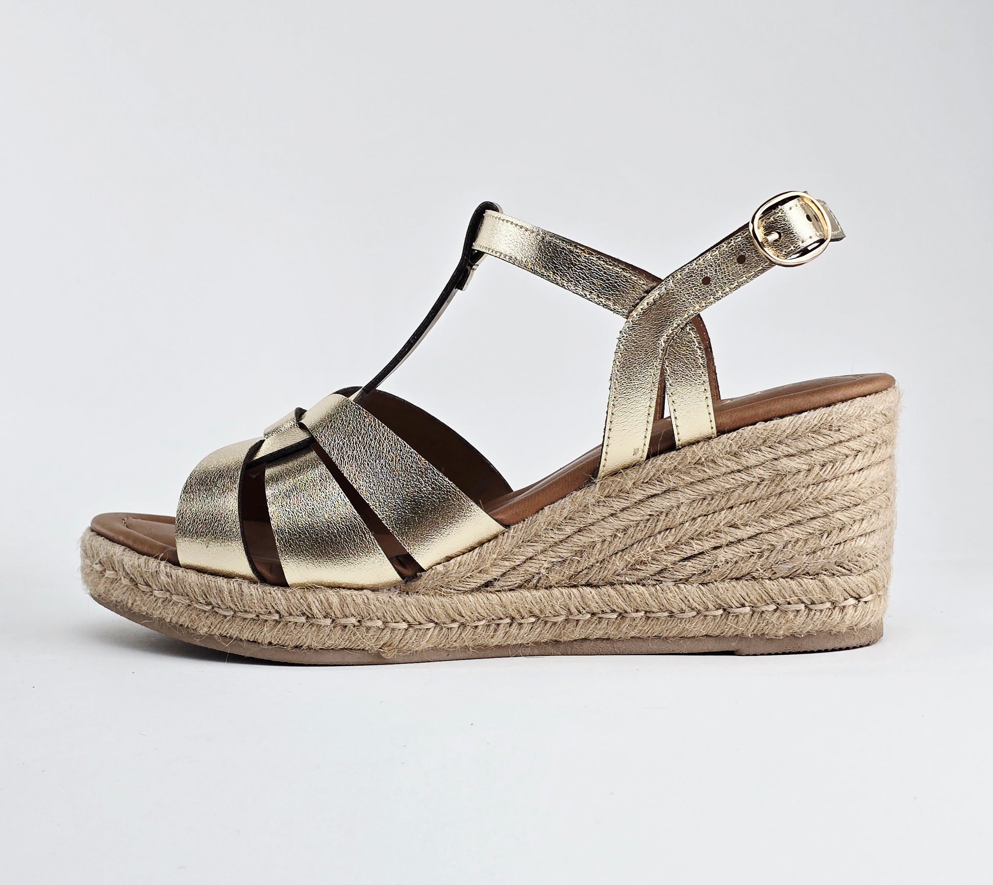 Descubre la elegancia funcional de Adriana Oro inglés, una sandalia que redefine el equilibrio entre estilo y bienestar. Elaborada con cuero premium, esta propuesta combina la versatilidad de un diseño clásico con la practicidad que demanda tu día a día. La estructura de alpargata garantiza una circulación óptima del aire, manteniendo tus pies frescos incluso en las condiciones más cálidas. Perfecta para quien valora la calidad sin comprometer la comodidad en sus elecciones de calzado.