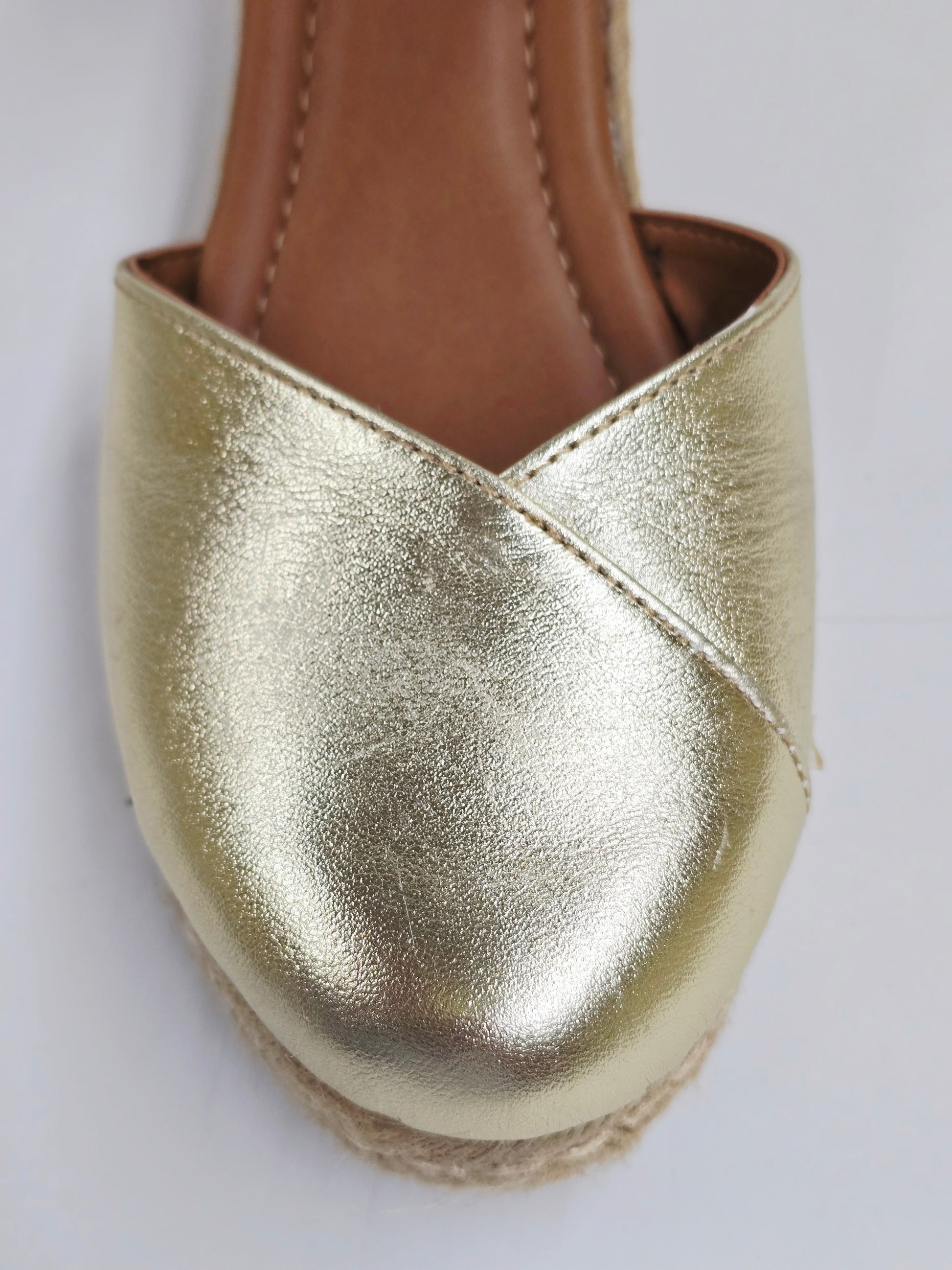 Las Alpargatas Beatriz en Oro Inglés combinan a la perfección comodidad y elegancia para el calzado diario. Fabricadas con piel genuina de alta calidad, ofrecen un ajuste ideal que permite la ventilación necesaria para mantener los pies frescos. Su tono sofisticado y diseño versátil facilitan su combinación con múltiples estilos. Su estructura liviana y flexible está diseñada para brindar comodidad durante actividades prolongadas, mientras que su textura suave garantiza una experiencia agradable al caminar. Pensadas para usarse todo el año, son una opción práctica y chic para quienes buscan unir moda y funcionalidad en cada paso.
