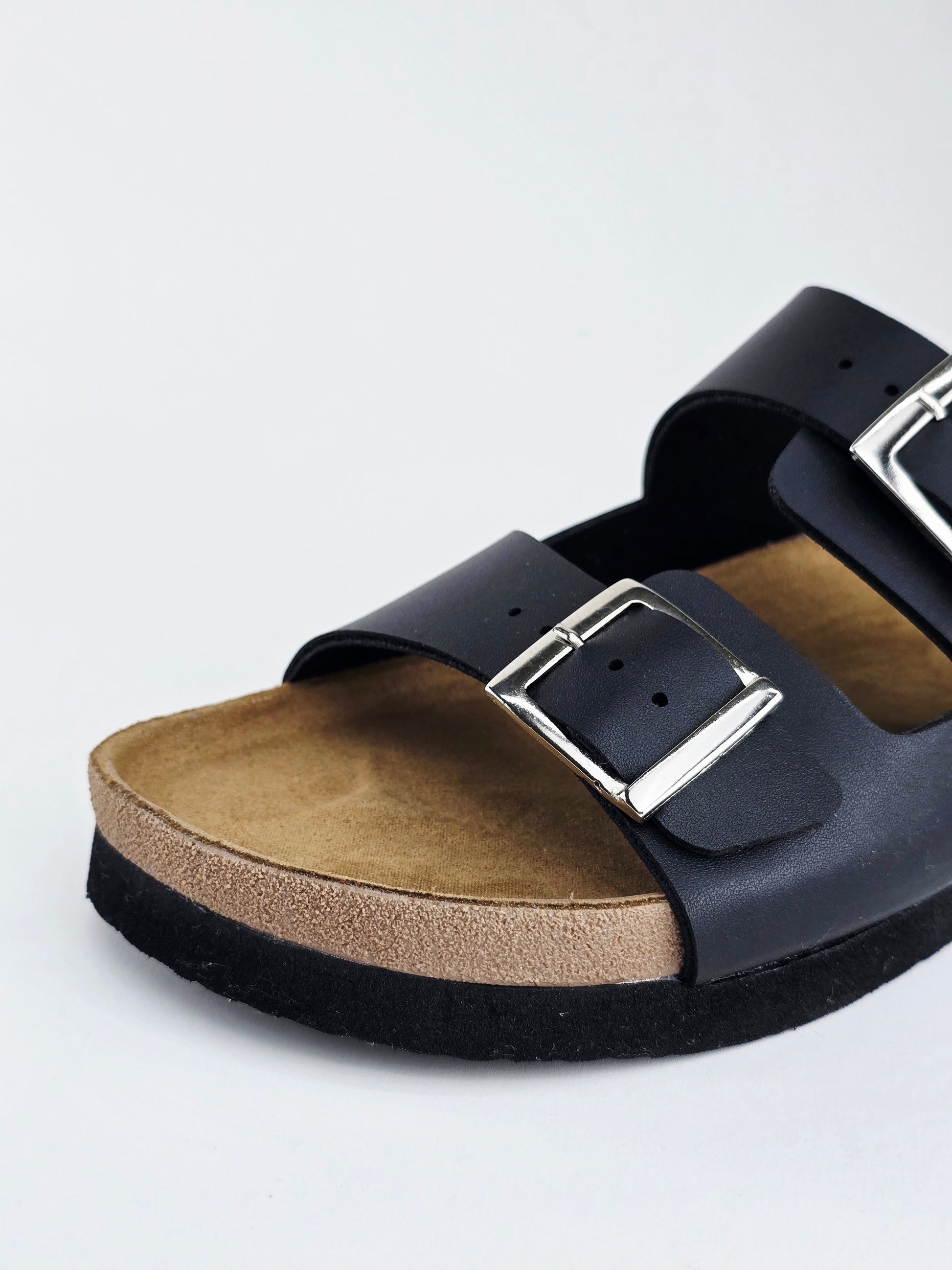 La sandalia Berlín en color negro es mucho más que un calzado: es tu ticket directo hacia la comodidad sin compromisos. Con nuestro innovador footbed en material termoplástico, cada paso se convierte en una experiencia de suavidad y ligereza que tus pies agradecerán. Este diseño clásico ha sido cuidadosamente creado para mantener tus pies en una sensación de relajación total durante todo el día, sin importar si estás explorando la ciudad o simplemente disfrutando del momento. Las dos correas superiores equipadas con hebillas ajustables se adaptan perfectamente a cualquier tipo de pie, brindándote ese ajuste personalizado que hace toda la diferencia. La Berlín Negro combina elegancia atemporal con funcionalidad práctica, convirtiéndola en la opción ideal para quienes no quieren renunciar a verse bien mientras disfrutan de máxima comodidad. Porque en aire sandals sabemos que los mejores días son aquellos donde tus pies están felices y tu estilo está en punto.