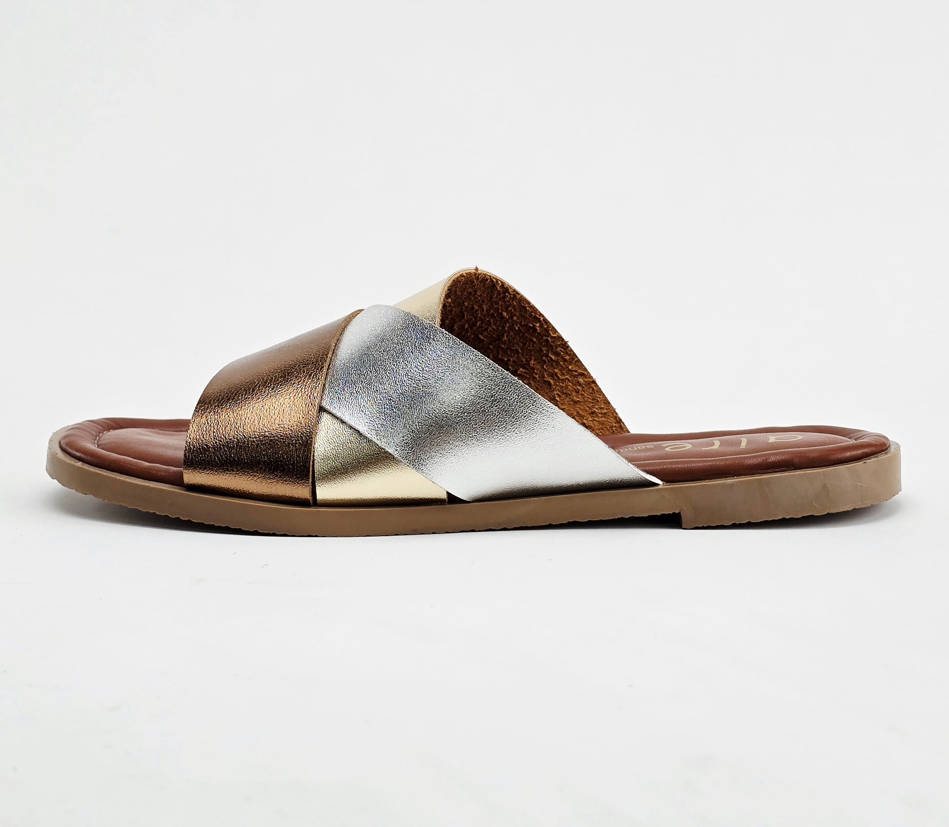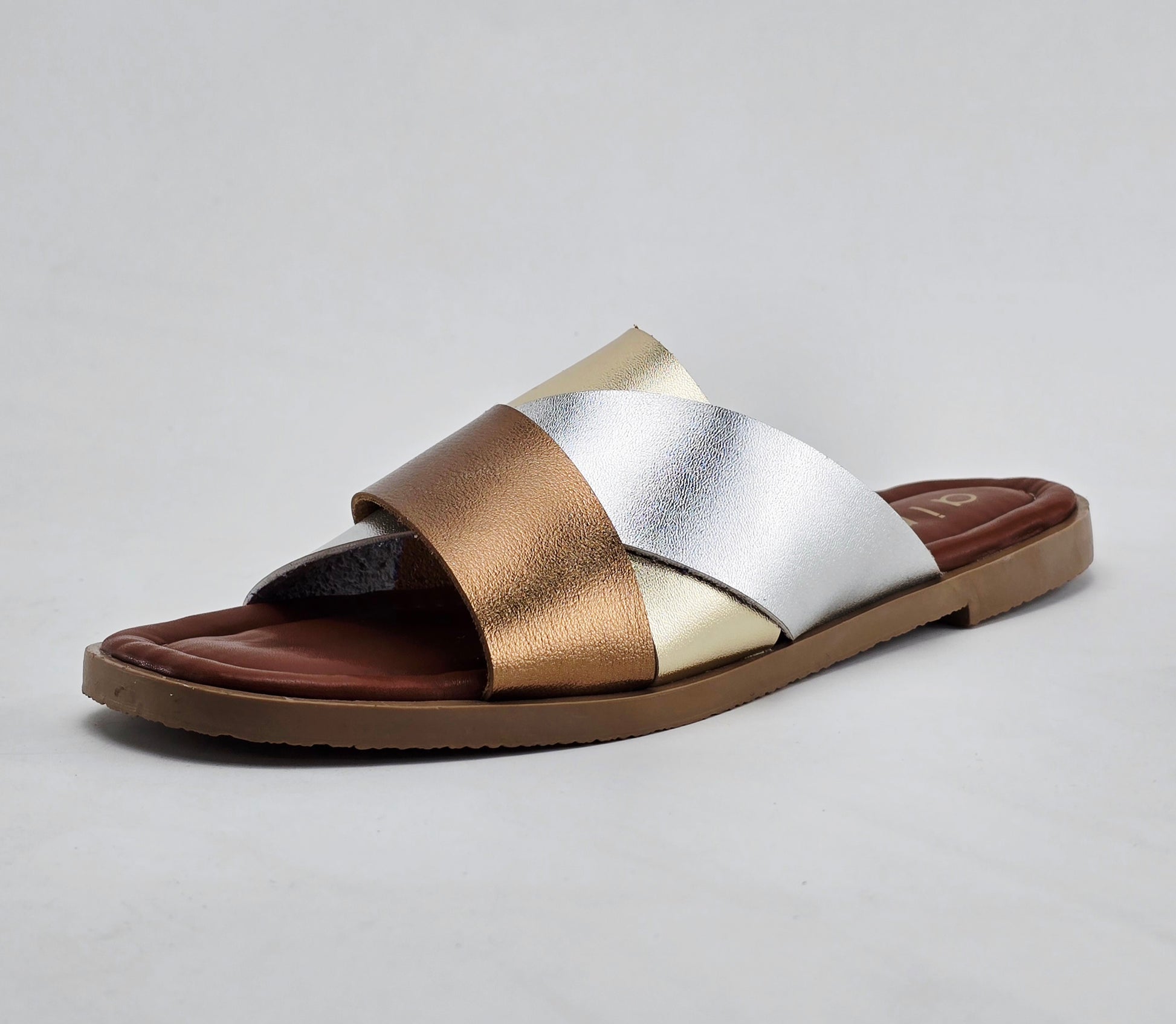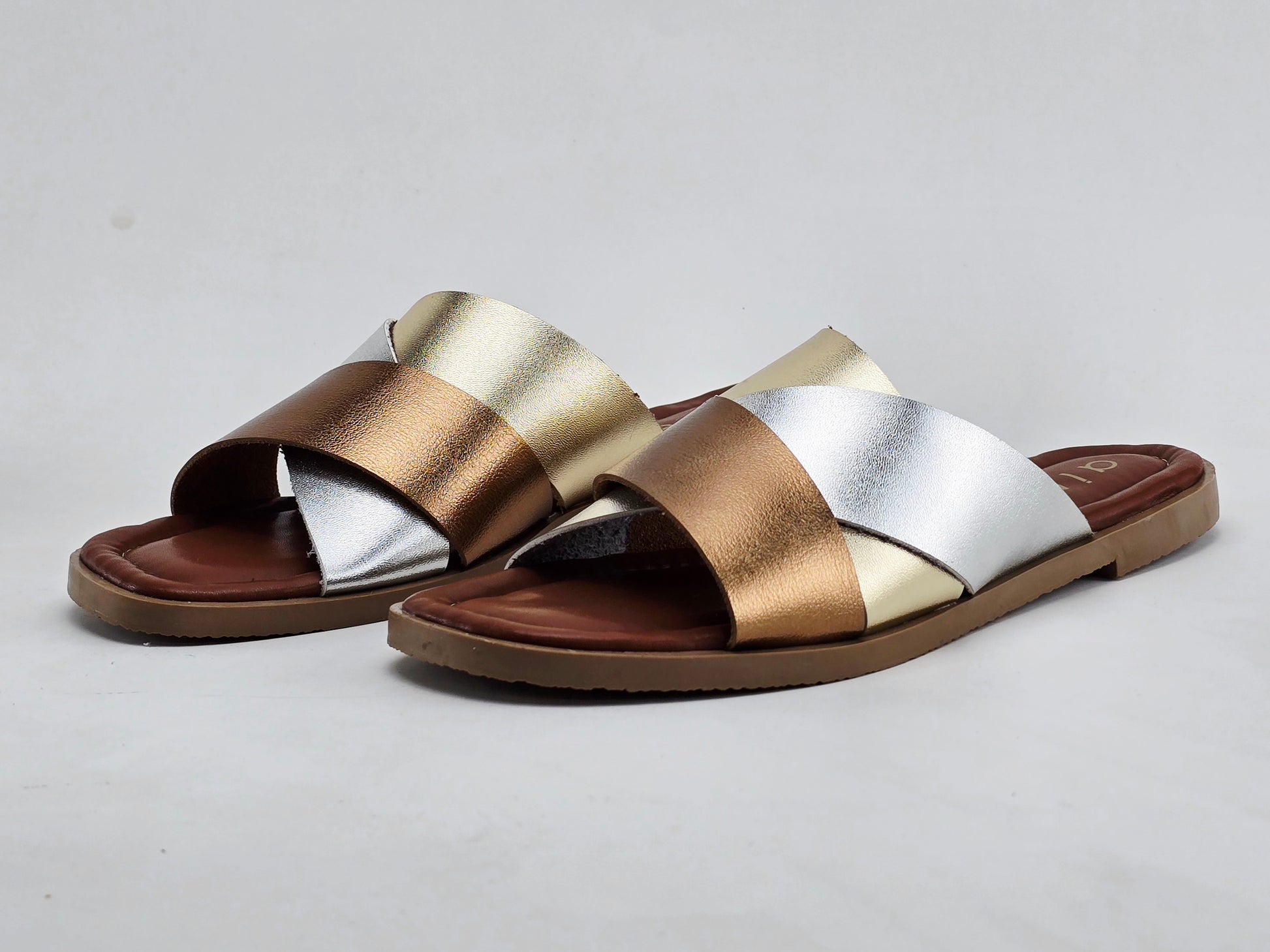 La sandalia Clairo ha sido cuidadosamente diseñada para ofrecer un descanso óptimo a tus pies durante todo el día. Su plantilla está especialmente acolchonada para proporcionar comodidad prolongada, ideal para quienes necesitan estar de pie o en movimiento constante. La parte superior está fabricada con malinche, un material resistente y flexible que garantiza durabilidad y adaptación al pie. Además, su forro de piel de vacuno en la plantilla aporta suavidad, transpirabilidad y un acabado de calidad superior. Disponible en tres elegantes colores metálicos, esta sandalia se integra fácilmente con diversas combinaciones de vestuario, haciendo de Clairo una opción versátil y funcional para el uso diario.
