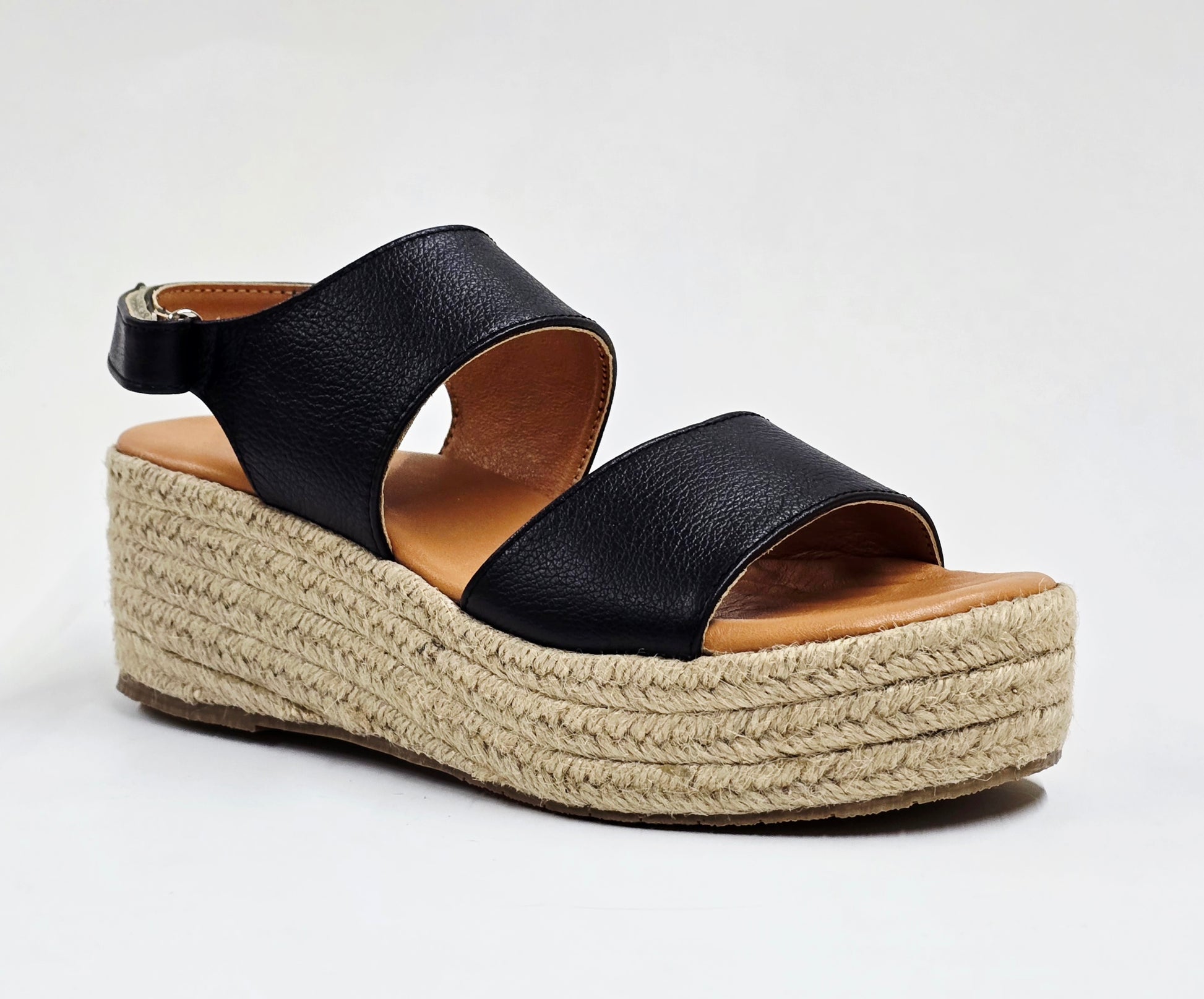 El modelo Conny Negro ofrece un diseño clásico que se adapta con facilidad a ocasiones formales y casuales. Su plantilla acolchada con memory foam asegura una comodidad prolongada durante todo el día. La plataforma de 6 cm, revestida en yute natural, proporciona estabilidad y un toque de estilo distintivo. Este calzado es perfecto para quienes valoran la combinación de elegancia y confort sin renunciar a la funcionalidad. Disfruta de un modelo versátil y refinado que realza cualquier look con sofisticación.