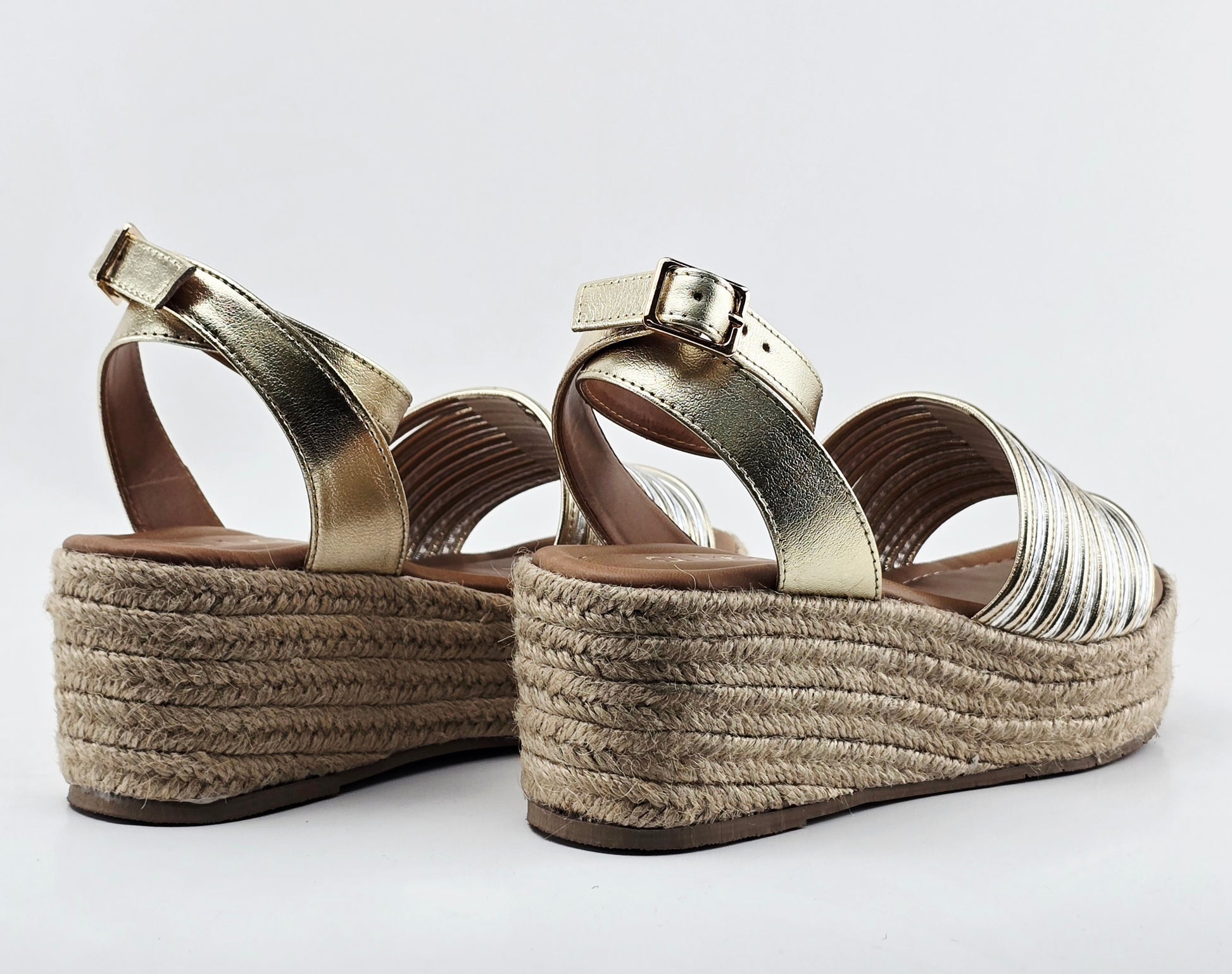 Estas sandalias no solo destacan por su atractivo diseño en color oro inglés, sino también por su versatilidad, que las convierte en el complemento perfecto para cualquier atuendo. Combínalas con tus prendas favoritas y disfruta de un estilo sin esfuerzo en cualquier momento del día.